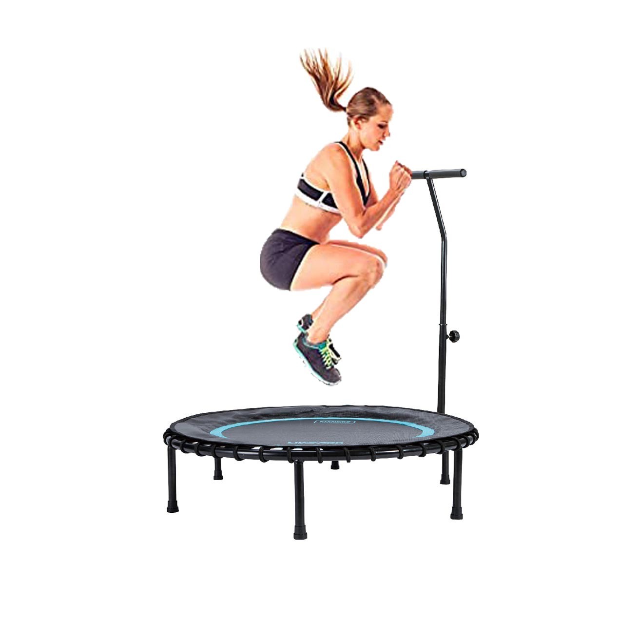 El trampolín LivePro con manija es la alternativa perfecta para ejercitarse de forma activa y segura en casa. Su estructura de acero inoxidable y diseño reforzado garantizan estabilidad y confianza durante cada salto.