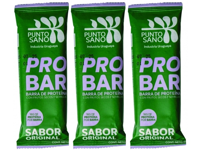 barra proteica original, pro bar punto sano, snack saludable, proteína 16g, frutos secos y semillas, barra uruguaya, snack post entrenamiento
