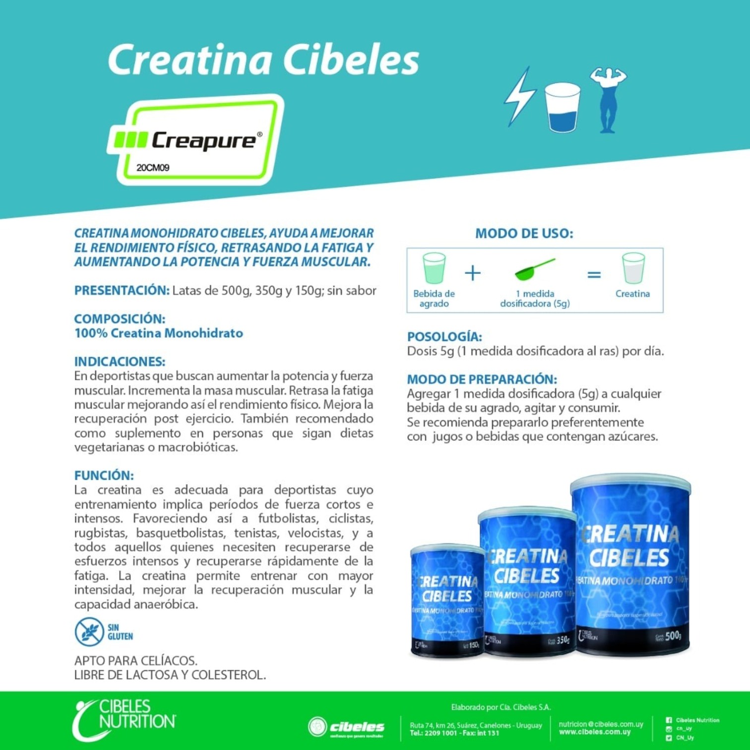 creatina cibeles, creatina monohidratada, creatina sin sabor, suplemento deportivo, creatina 150g
