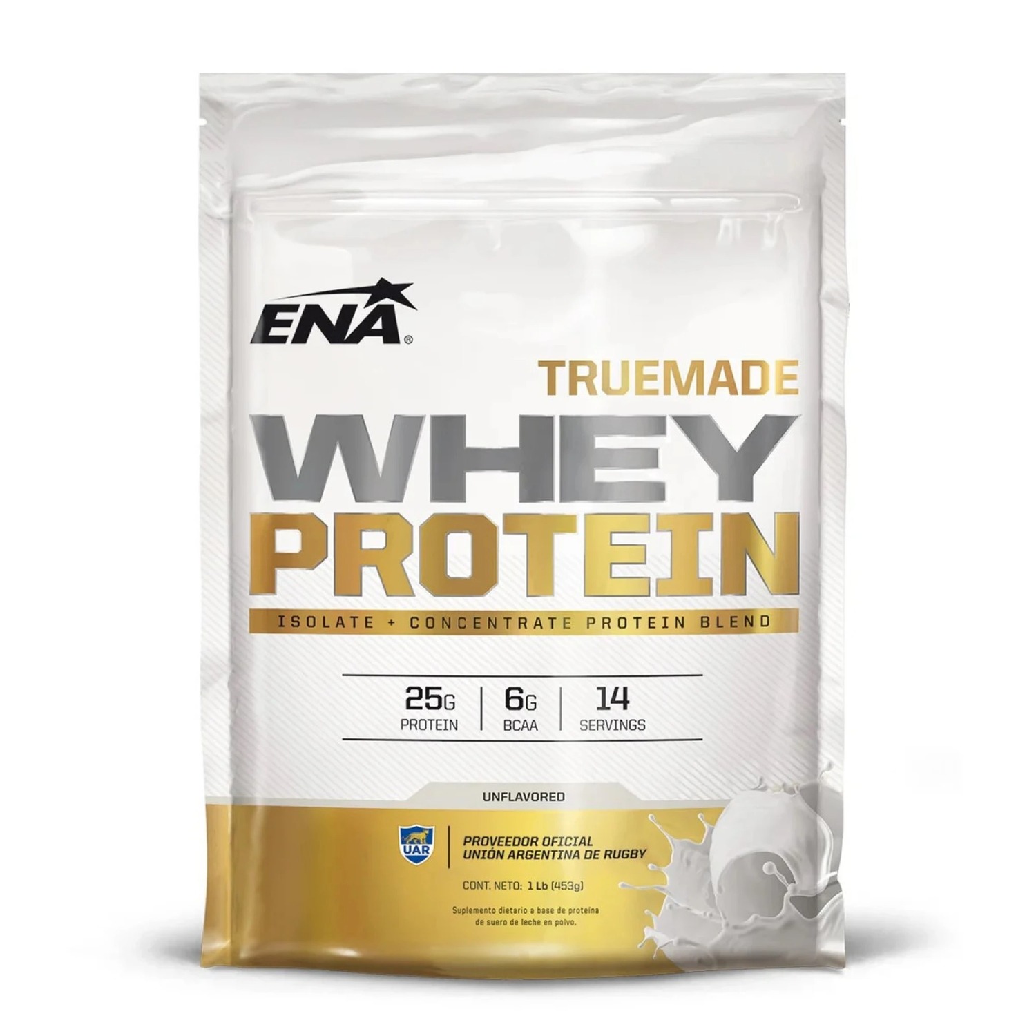 ENA TrueMade Whey Protein Vainilla 453g ? 25g de Proteína, 6g BCAA, 5.7g Glutamina ? Sin Azúcar, Alta Absorción
