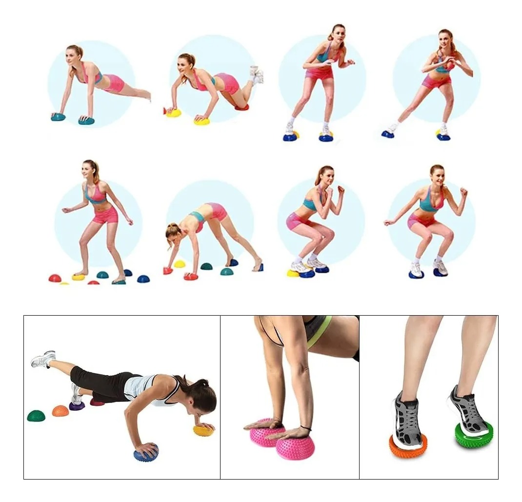 mini bosu 16cm, media esfera inestable, mini bosu equilibrio, bosu con pinches, bosu propiocepción, mini bosu yoga fitness, mini bosu rehabilitación, media esfera tobillos rodillas