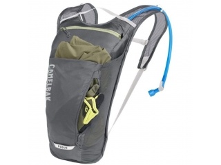 Incluye un depósito de reserva CamelBak Crux, que ahorra espacio en la mochila gracias a un perfil aplanado. El diámetro más amplio de la manguera puede proporcionar un 20% más de caudal y una mejor hidratación. El asa, que se adapta bien a la mano, permite un fácil manejo del depósito. La apertura y el cierre de la amplia abertura están asegurados por un tapón de sellado. También se ha mejorado el cierre de la boquilla, que ahora se ajusta ergonómicamente en la posición de la manguera y su cierre es intuitivo.