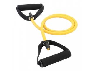 Entrena fuerza y tonificación en cualquier lugar con este tubo elástico de látex natural. Disponible en tres niveles de resistencia y con anclaje incluido para mayor versatilidad.