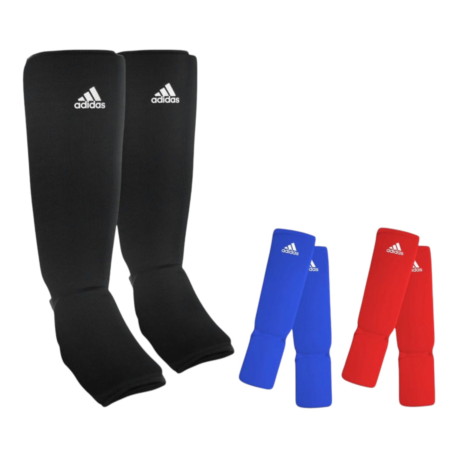 Protectores tibiales Adidas con empeine, diseñados para brindar protección y comodidad en entrenamientos y combates.