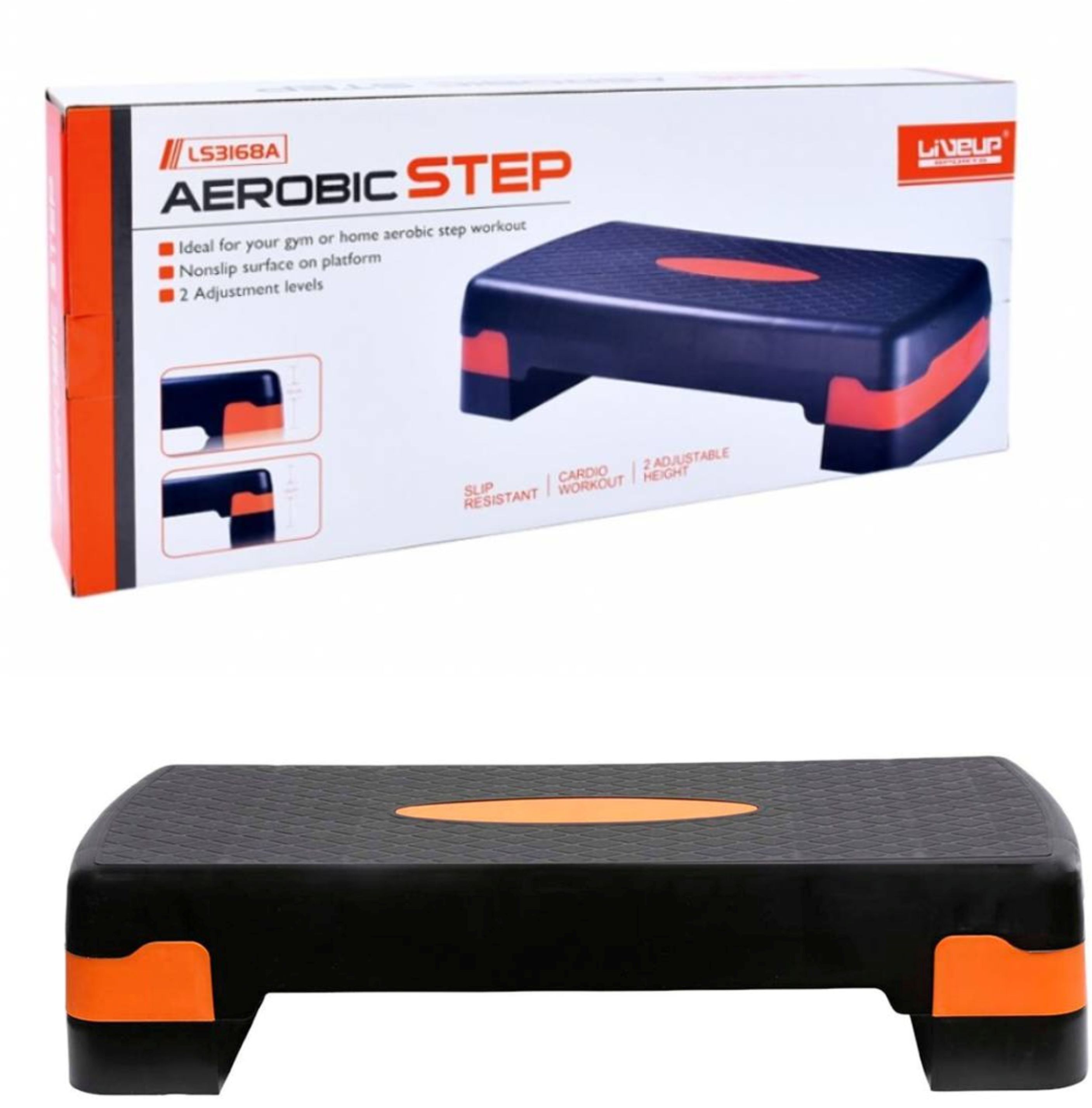 El Step Aeróbico LiveUp LS3168A es una herramienta versátil diseñada para ejercicios cardiovasculares y de fuerza. Fabricado con PVC resistente, proporciona una superficie antideslizante que asegura estabilidad durante cada movimiento. El step es ajustable a dos niveles de altura (10 cm y 15 cm), lo que lo hace adaptable a diferentes tipos de entrenamiento y niveles de habilidad.