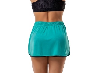 short con falda, short tipo falda, short deportivo mujer, ropa fitness, short interno, short con cobertura, short malla trabajada, short versátil, moda deportiva mujer, short cómodonn